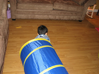 Next crawl through one fabric tube.